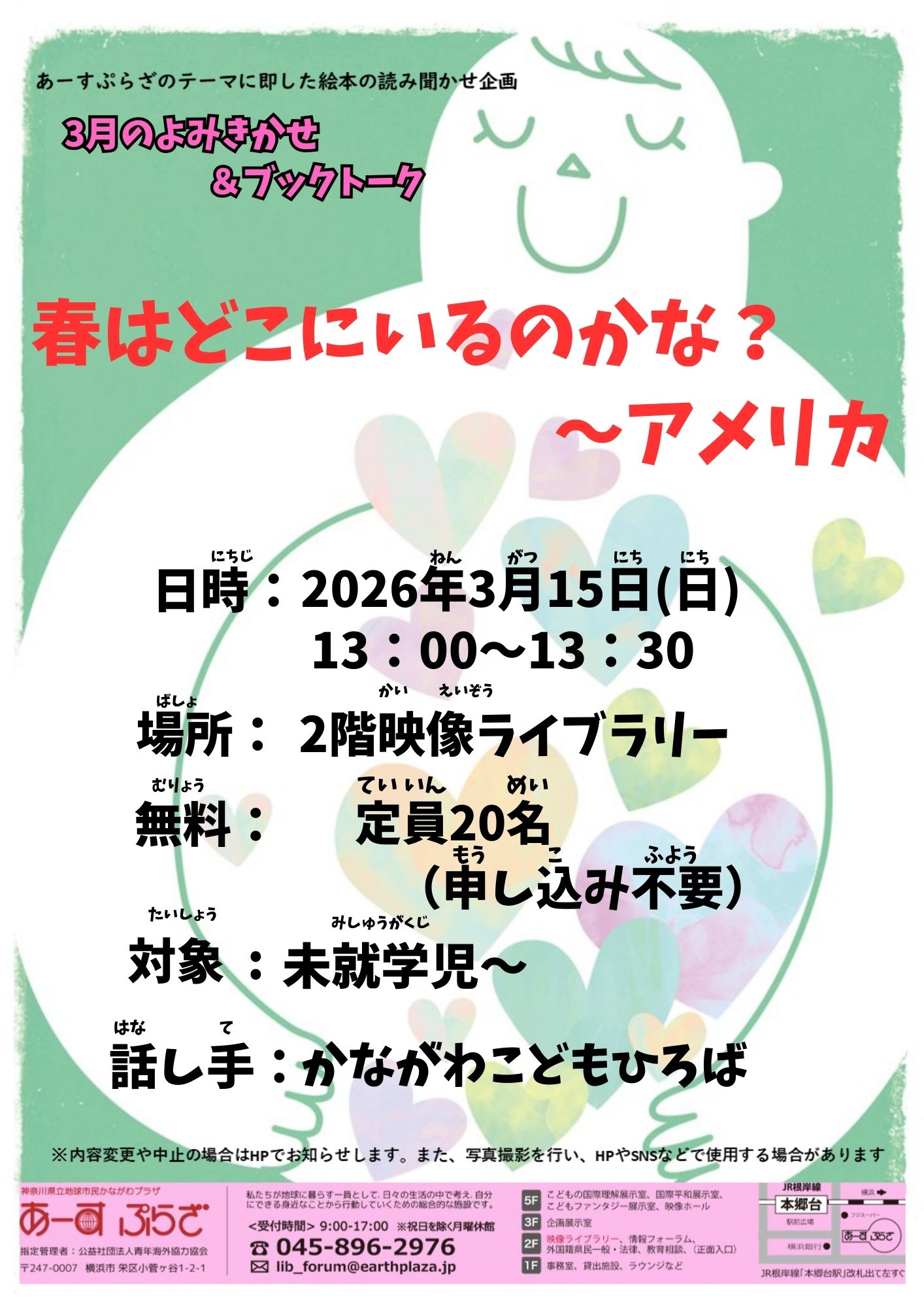 今月の読み聞かせのテーマは「春はどこにいるのかな? ~アメリカ」です。